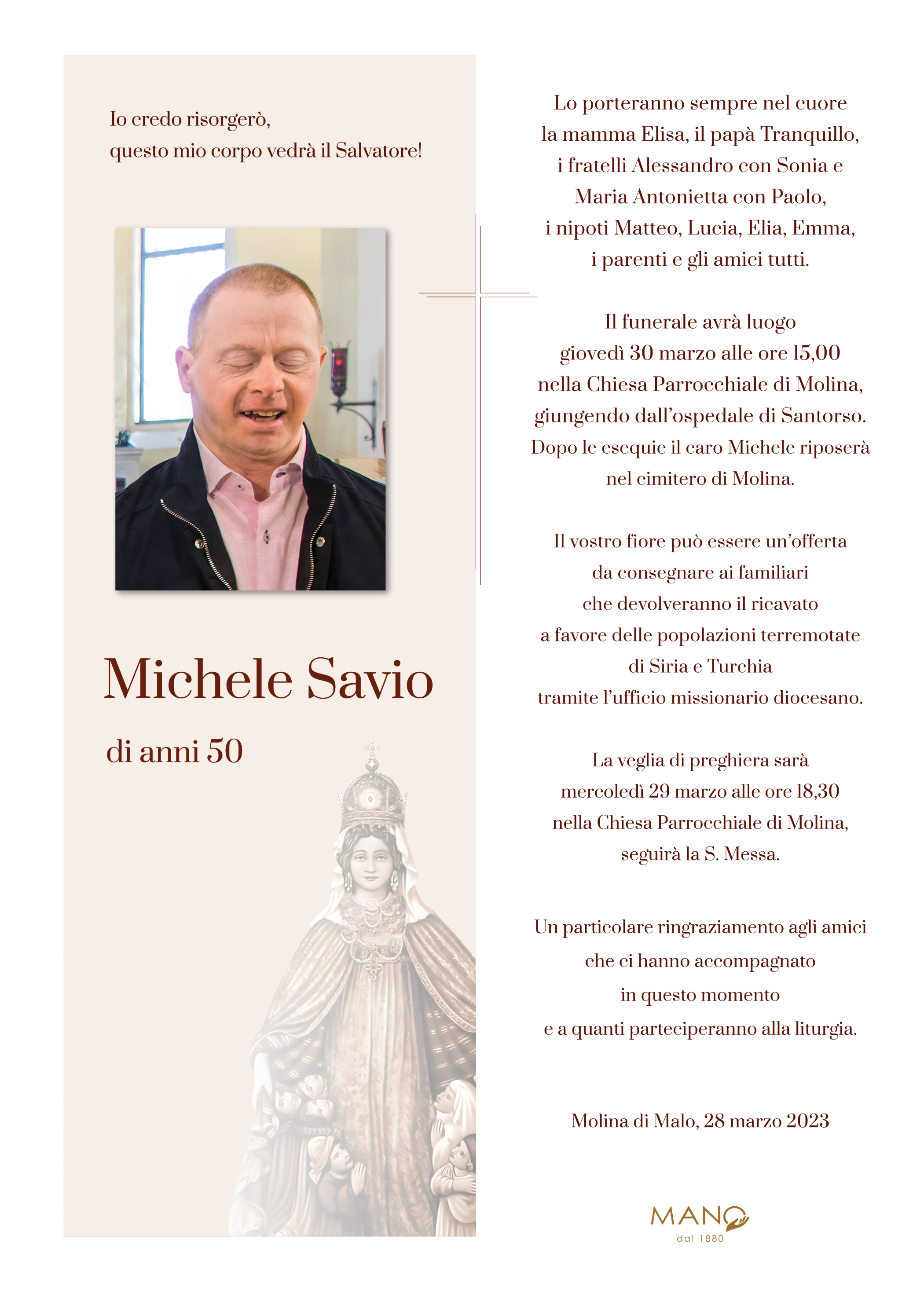 Vi giungano le più sentite condoglianze per la perdita del caro Michele. Un ricordo nella preghiera per tutta la famiglia ed un abbraccio particolare ad Alessandro e Sonia. Giuseppe Busatto e fam. - Belvedere di Tezze